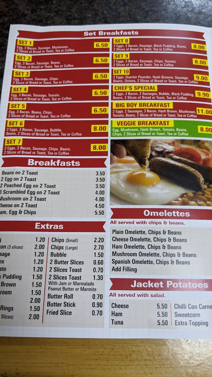 The cafe offers a menu that tantalizes your taste buds with a variety of scrumptious options. Whether you’re in the mood for a hearty breakfast or a quick lunch, Harrold Hill Cafe has you covered. Enjoy a Plain Omelette or indulge in a rich Cheese Omelette, both served with crispy chips and beans that provide a satisfying crunch. For something with a bit more flair, the Spanish Omelette showcases vibrant flavors that dance on your palate, making it a popular choice among patrons.